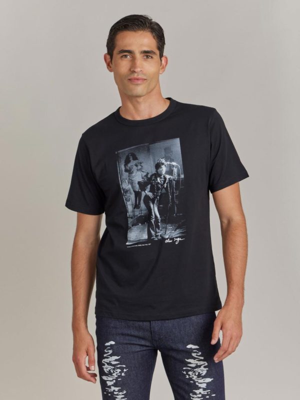 This unisex soft cotton jersey t-shirt features a unique piece of art by David Godlis, showcasing his iconic photograph of Alan Vega.