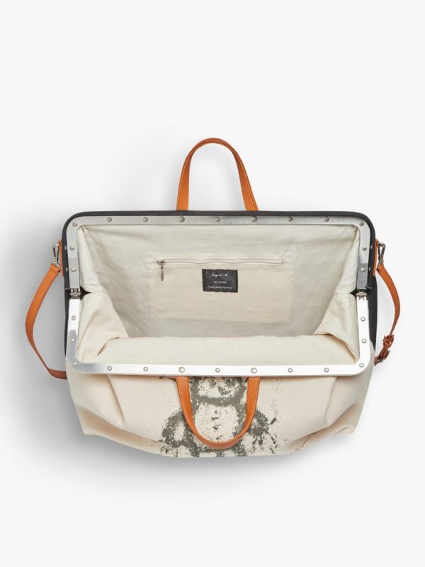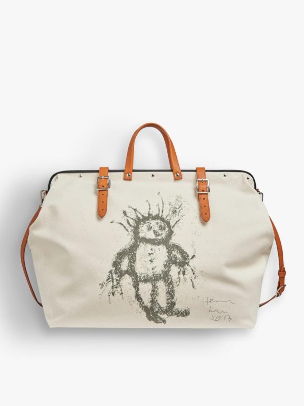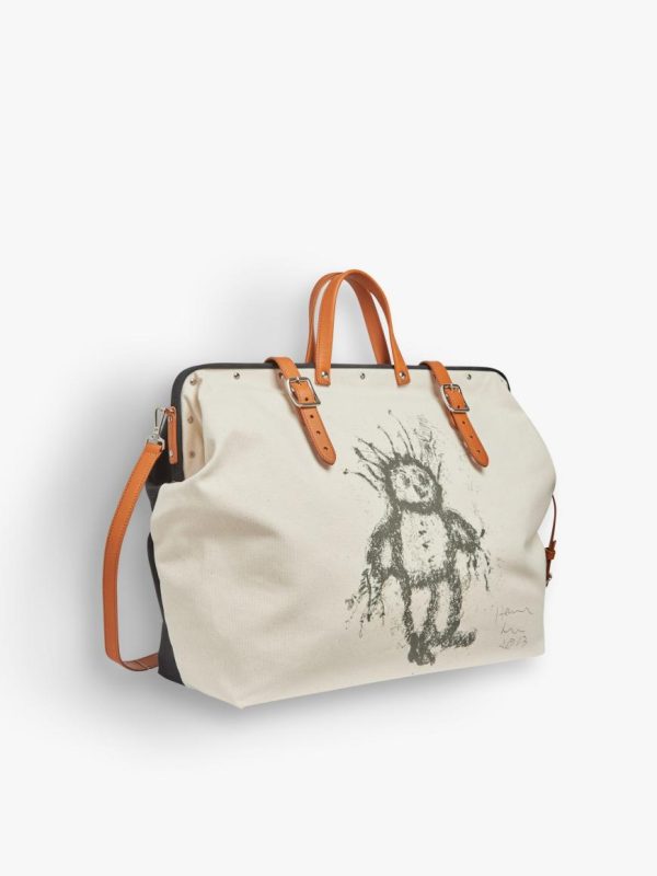 This charming doctor-style cotton canvas and leather bag features an illustration by director Harmony Korine on the front.