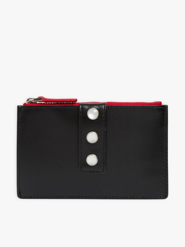 Smooth Italian leather wallet with a design inspired by the snaps on the agnès b. cardigan.