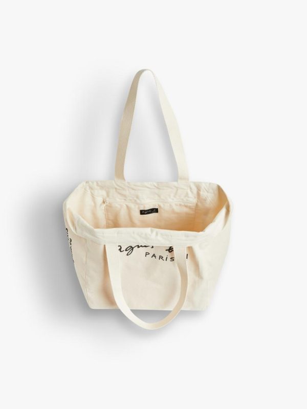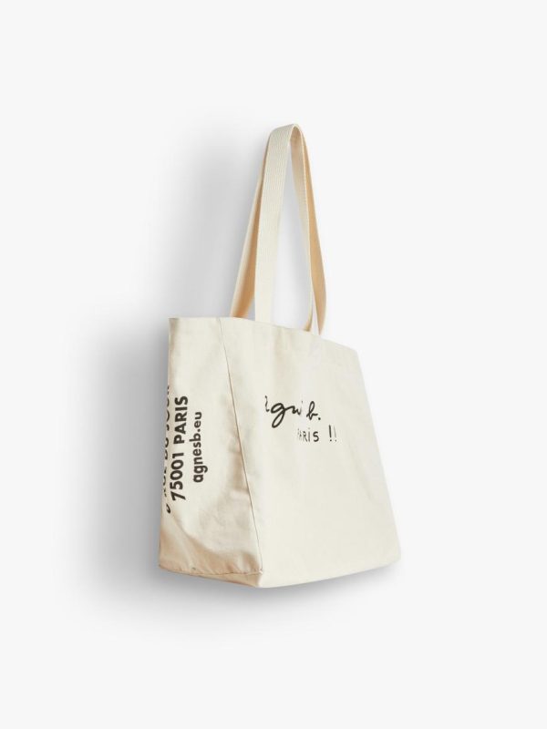 Agnès B. Bags | Women/Men Ecru Cotton Tote Bag Screen-Printed “Paris”