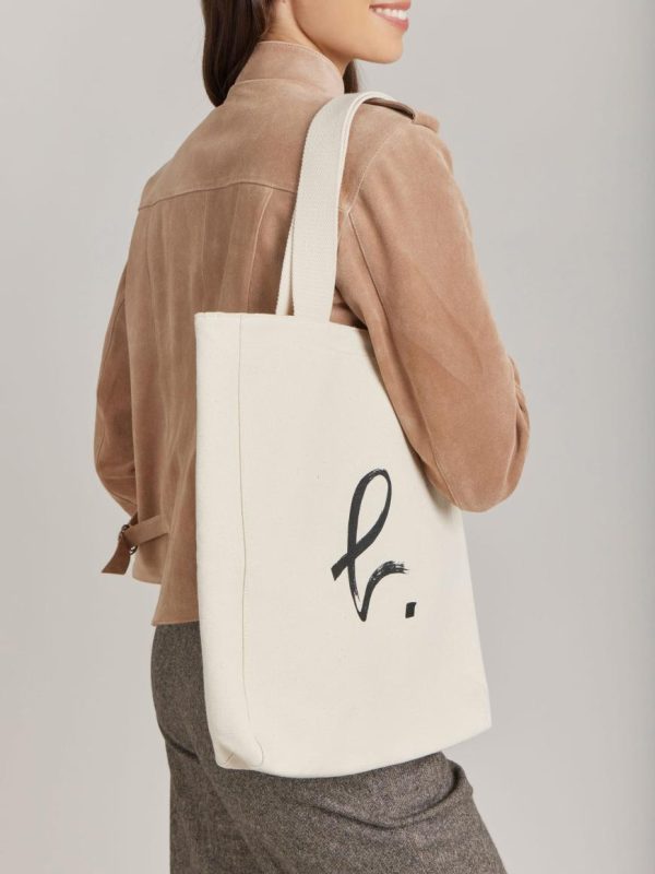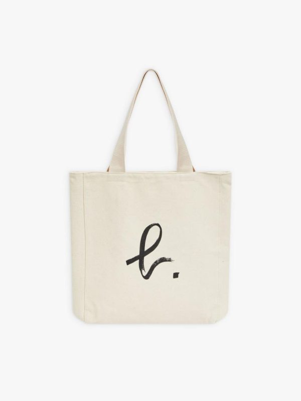 This trendy 100% cotton tote bag features a hand drawn b. logo on the front.
