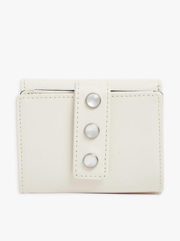 Smooth Italian leather wallet with a design inspired by the snaps on the agnès b. cardigan.