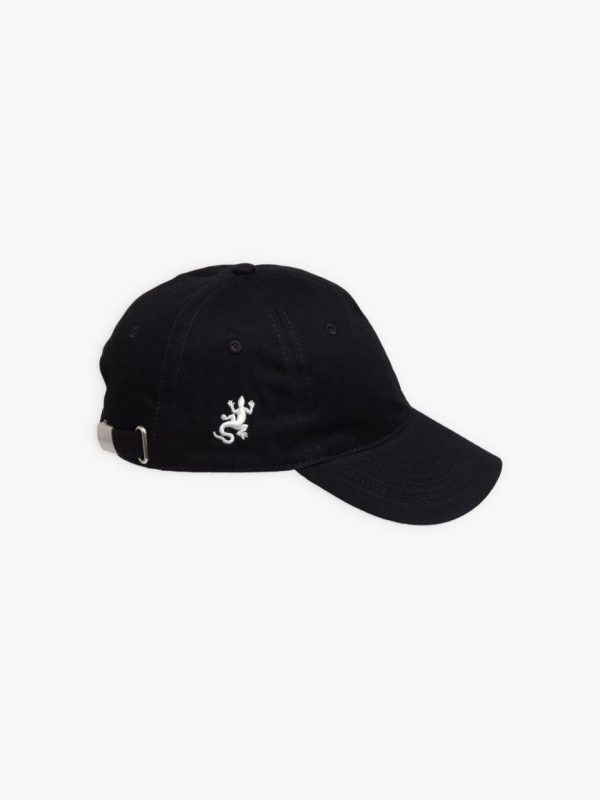 Baseball cap with a contrasting lizard embroidered on the side. The lizard is an iconic symbol of agnès b.