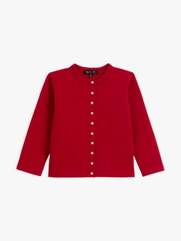 This “12 ans” snap cardigan for children is made from super-soft cotton fleece with mother-of-pearl snap buttons. It is made in France
