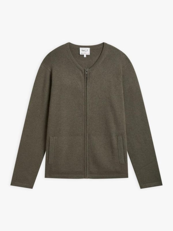 The cashmere Zip cardigan reimagines the timeless snap cardigan from agnès b. It is made from 100% cashmere.