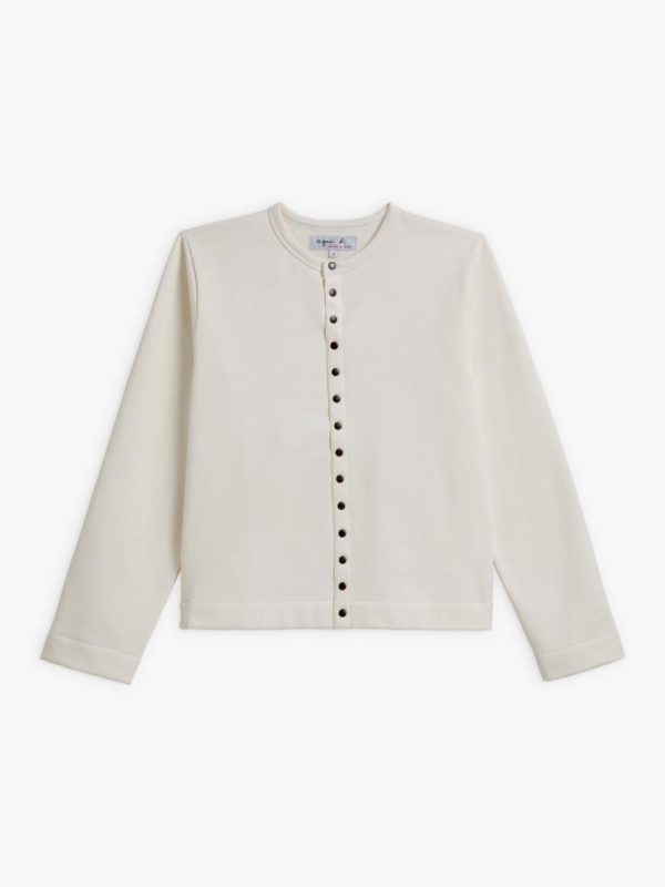 The snap cardigan was created by agnès b. in 1979. It has been extremely successful since its launch and agnès b. has continuously updated it over the years.