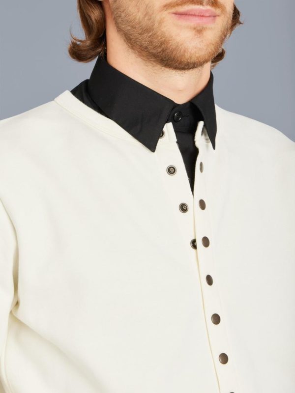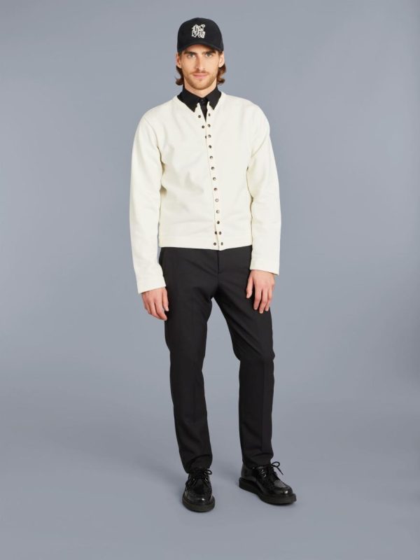 Made in France, the “Bronze” snap cardigan for men in cotton fleece has a straight cut and bronze metal press studs.