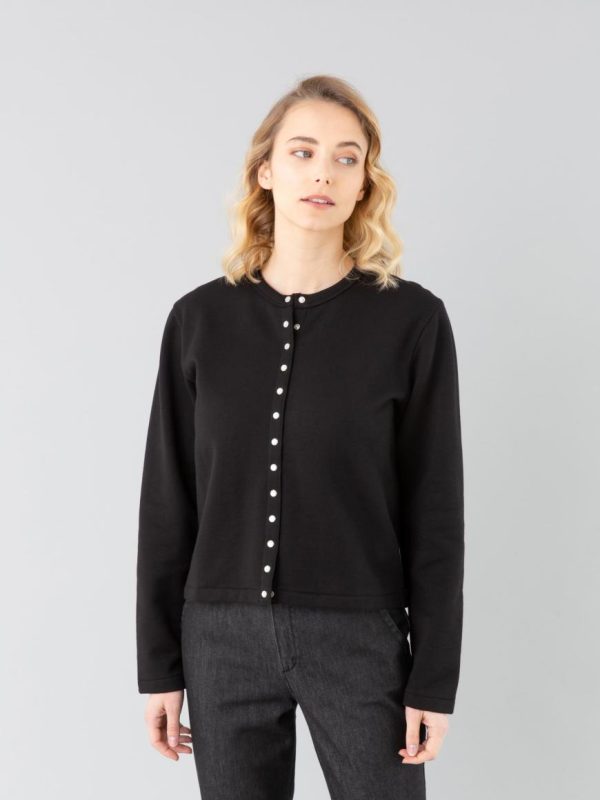 Le Classique snap cardigan is made in France in cotton fleece and is the first snap cardigan created by agnès b. With a straight wide cut and minimalist look, it suits all styles.