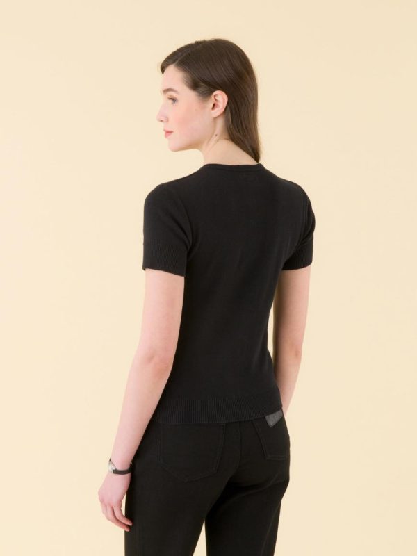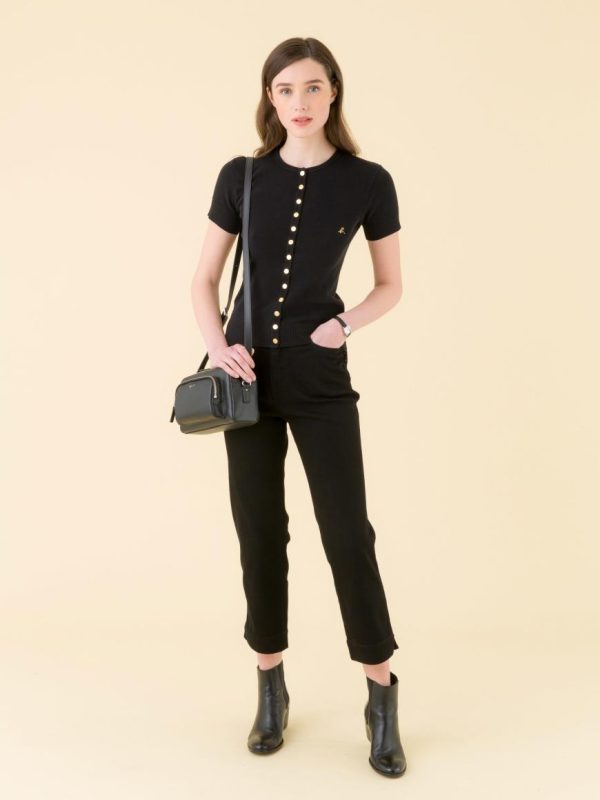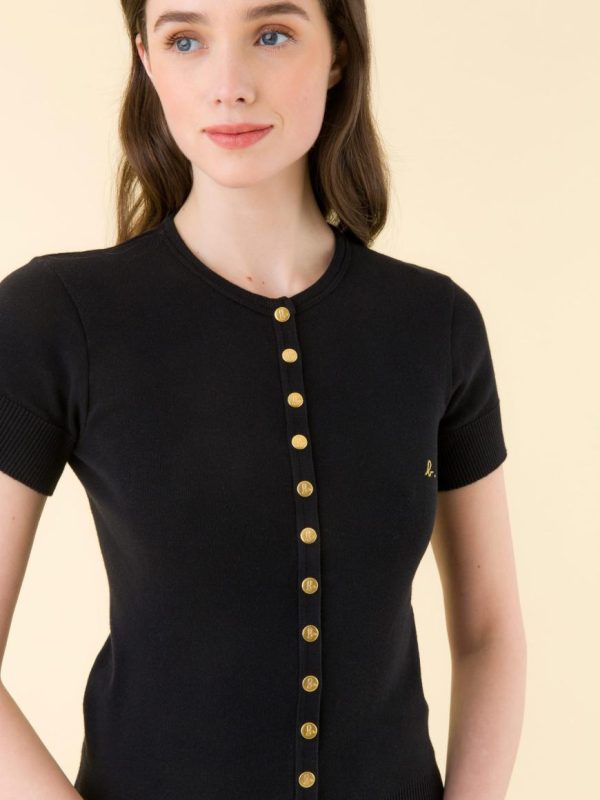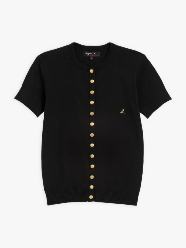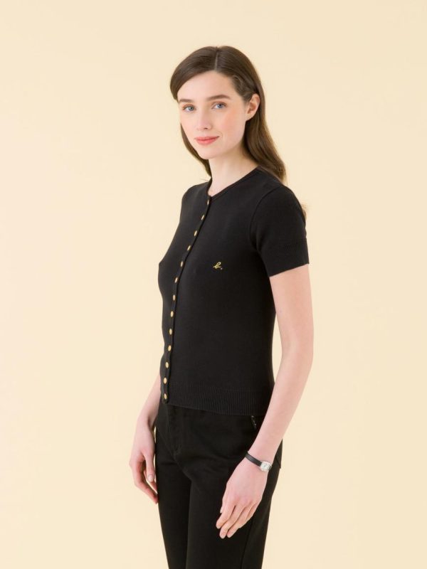 The Swing short-sleeve cotton snap cardigan is made in France with a fitted cut and snap buttons in gold-tone metal engraved with “b.”, plus b embroidery on the front.
