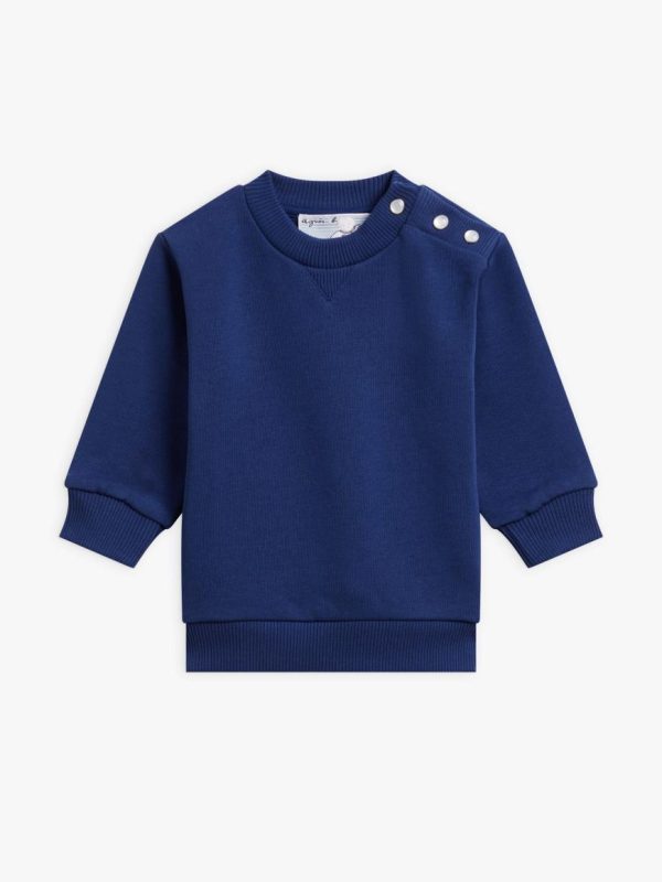 Super-soft cotton fleece long-sleeve sweatshirt that is easy to pull on thanks to the snap button opening on the shoulder.
