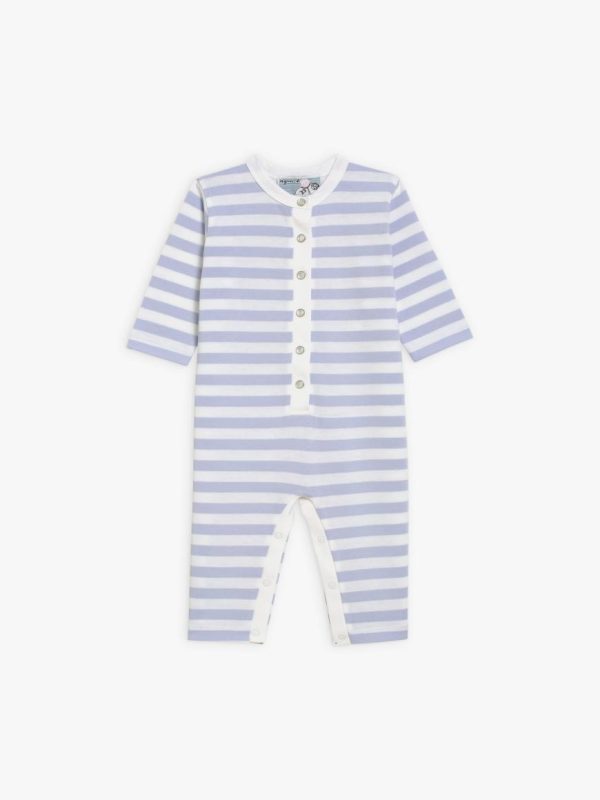 The Lisette soft, supple cotton jersey sleepsuit showcases the iconic 12/12 agnès b. stripes.
