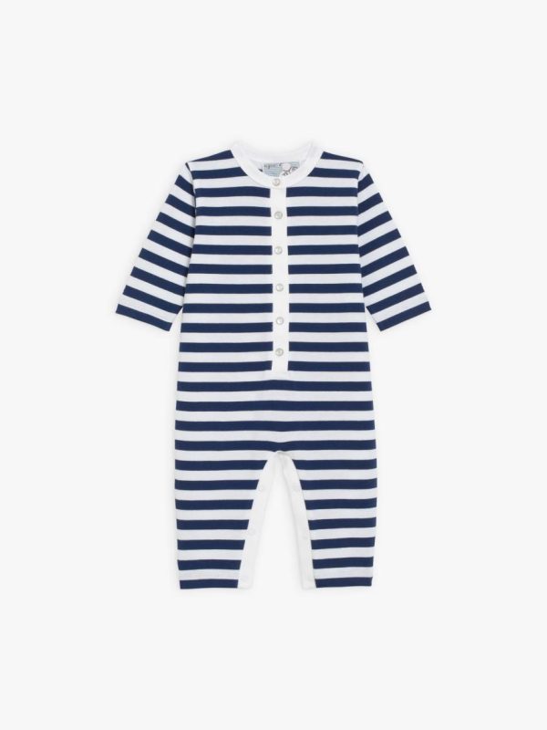 The Lisette soft, supple cotton jersey sleepsuit showcases the iconic 12/12 agnès b. stripes.