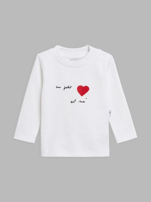 – “un petit coeur est né” (a little darling is born), designed by Agnès is screen-printed on the front.
