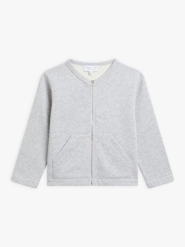 Agnès B. Clothing | Children Mottled Grey Cotton Jersey Zip Cardigan With Pockets