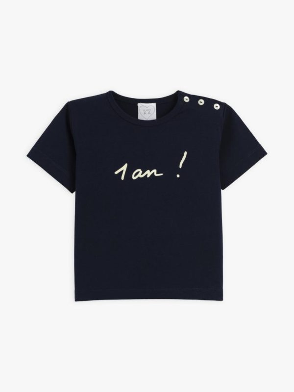The Anniversaire (Birthday) baby top is made of very soft comfortable cotton jersey. It features a screen-printed birthday message, to proudly display baby’s age!