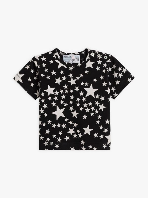 Short-sleeve T-shirt-style cotton jersey top featuring a star print. Shoulder buttoning for easy changing.