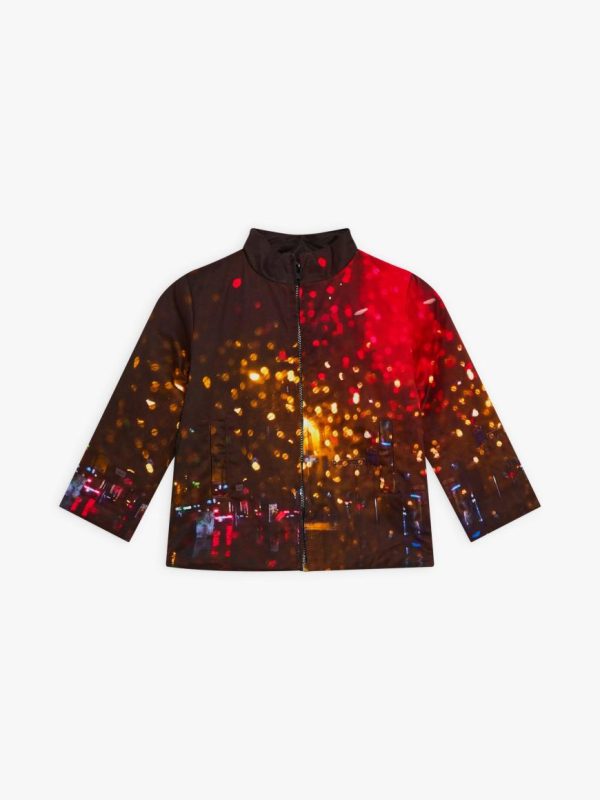 Zip cotton jacket with digital print “Feu rouge” (red light), photo by agnès b.