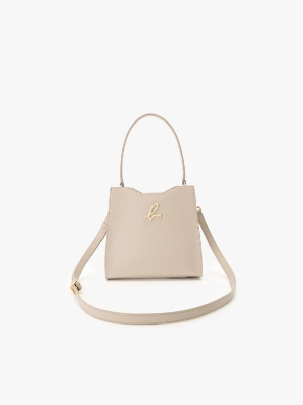 Leather bag with “b.” logo flat-embossed on the front.