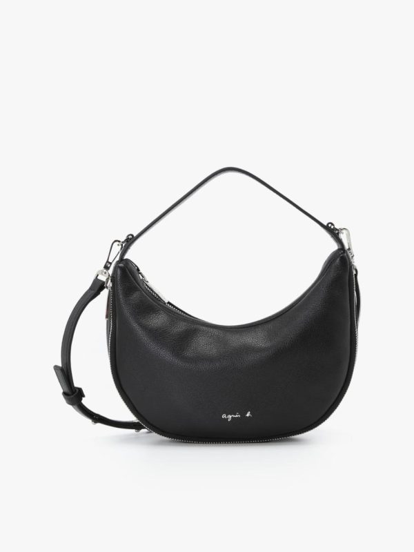 Oval leather handbag.