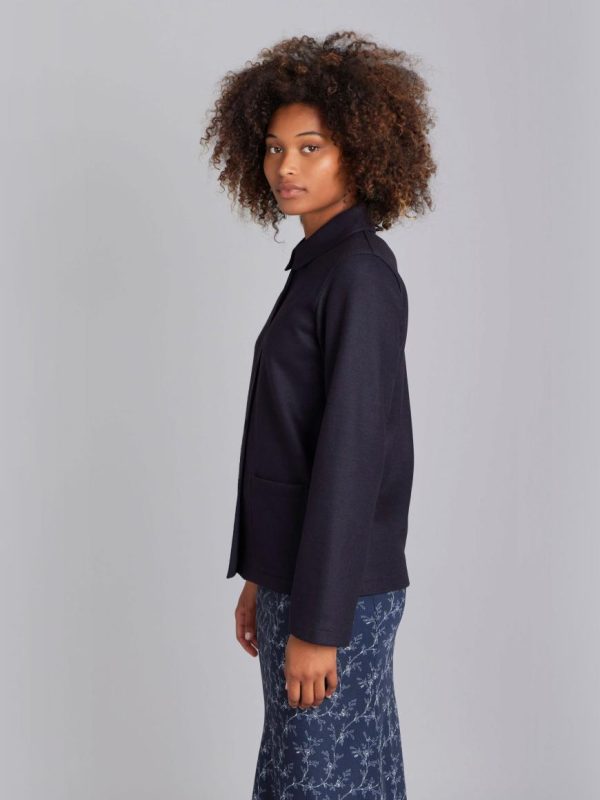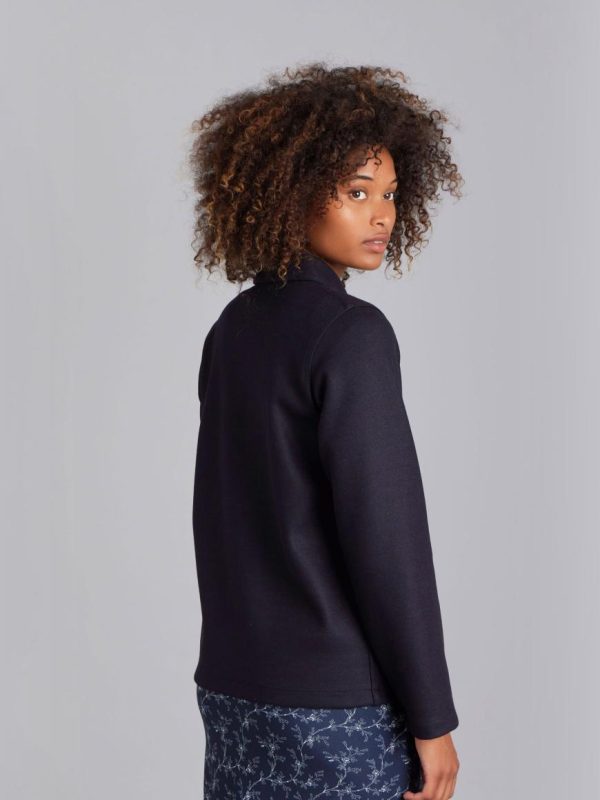 The Mandarin jacket is designed in Milano jersey, a soft fabric that will keep you warm! Style it with a cosy jumper, skirt and a boots for a chic autumnal look.