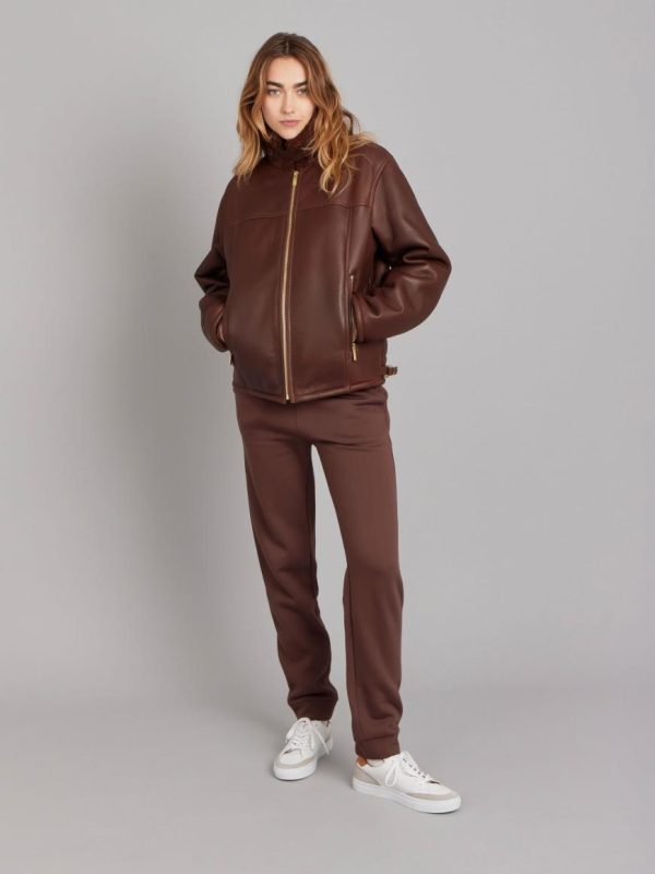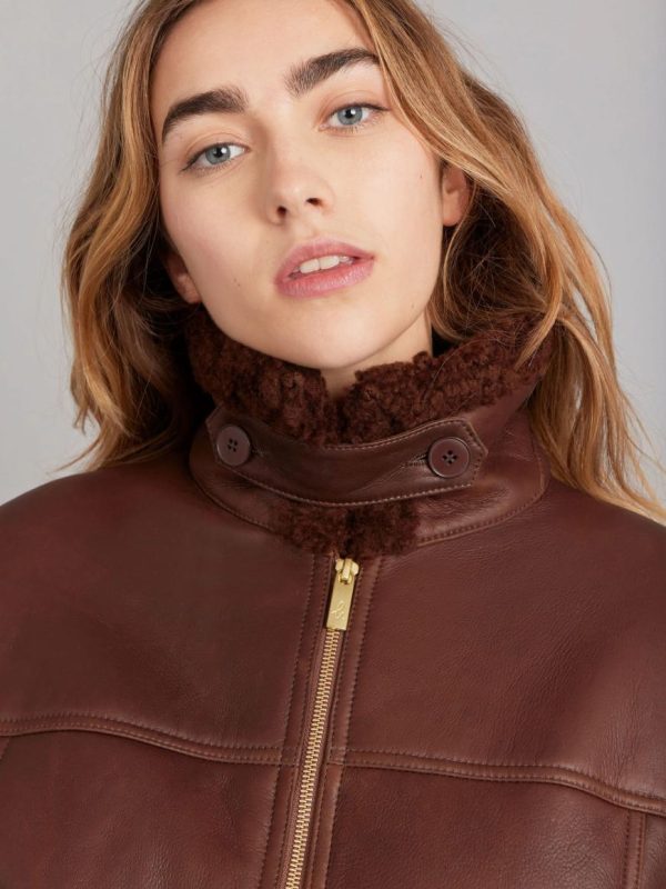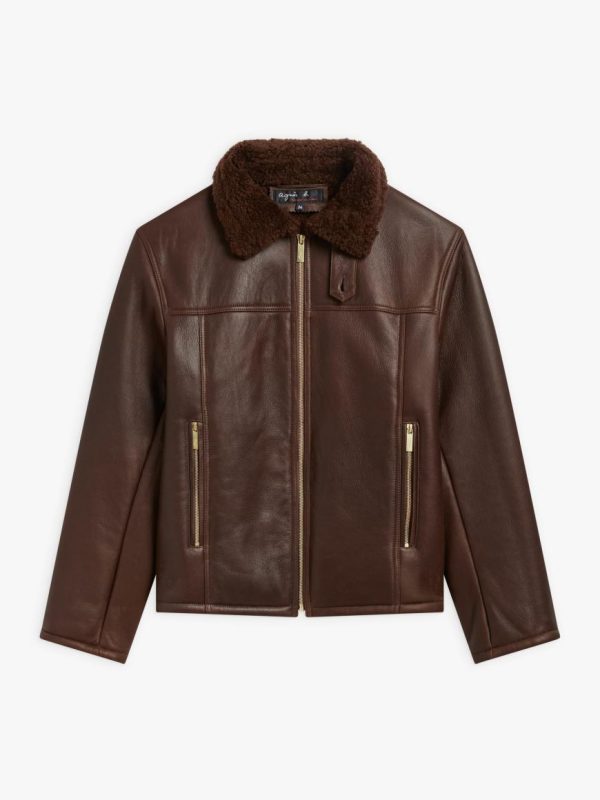 Made in France, this lamb leather oversized jacket has front zip and pocket fastening.