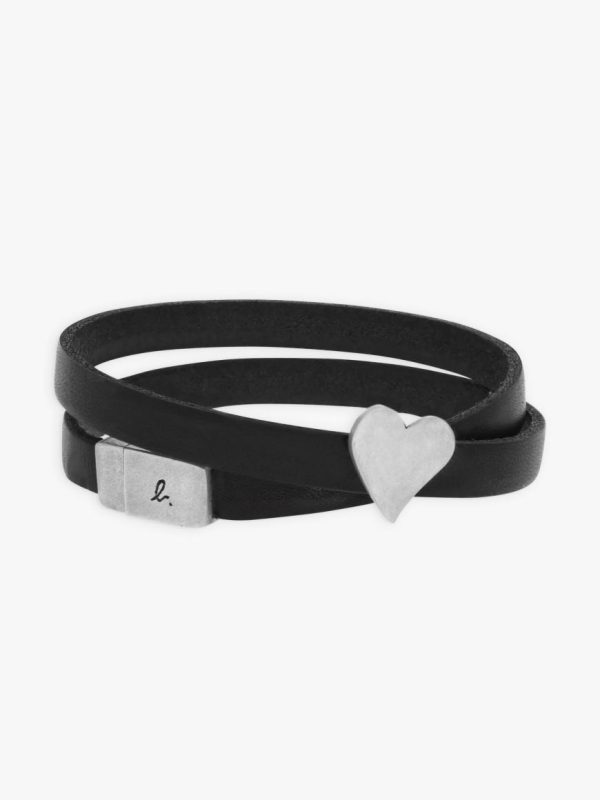 Double-wrap lambskin leather bracelet with a heart charm. Made in Madagascar.