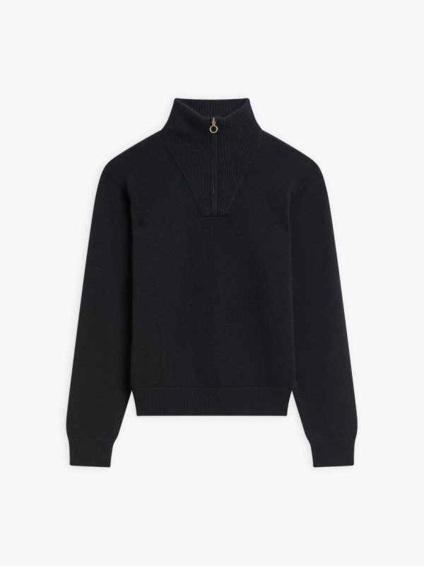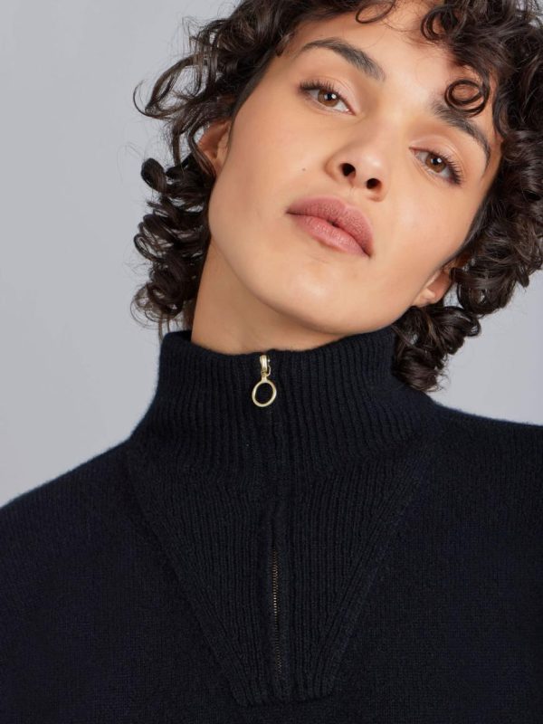 Made in Mongolia, the cashmere trucker jumper has a zipped high neckline to heighten that snug feel and keep you warm in winter.