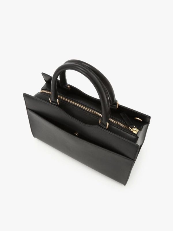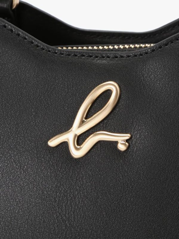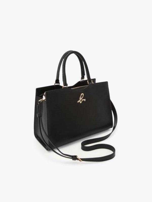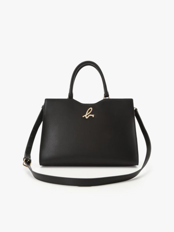 Leather bag with “b.” logo flat-embossed on the front.