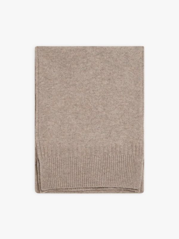 The Nelio unisex scarf is made from 100% cashmere with 2×2 then 1×1 ribbing on the ends and the “b.” logo in tone-on-tone embroidery.