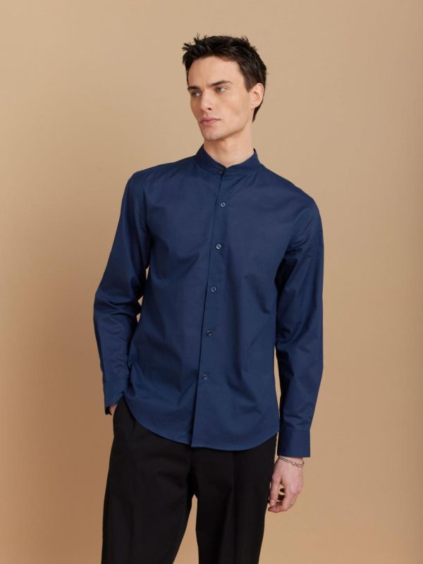 The Pablo shirt is crafted from cotton and features a Nehru collar. Cut for a slim fit, this shirt is finished with long sleeves and a curved hemline.