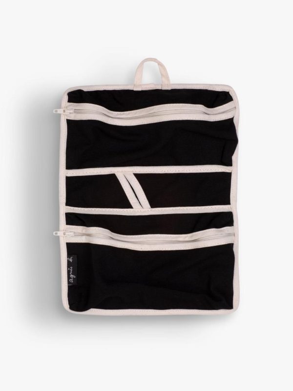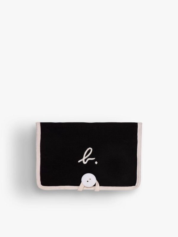 – Embroidered “b.” logo, mother-of-pearl button and ecru braid