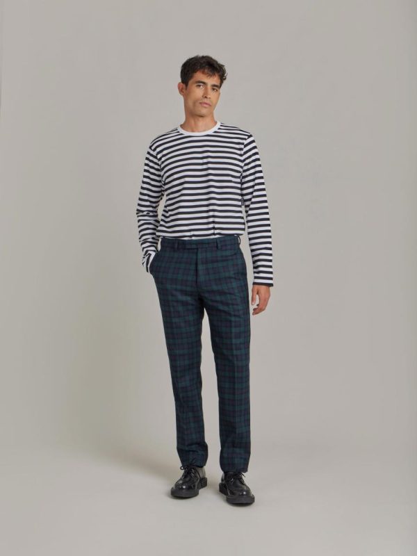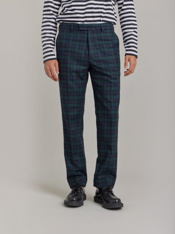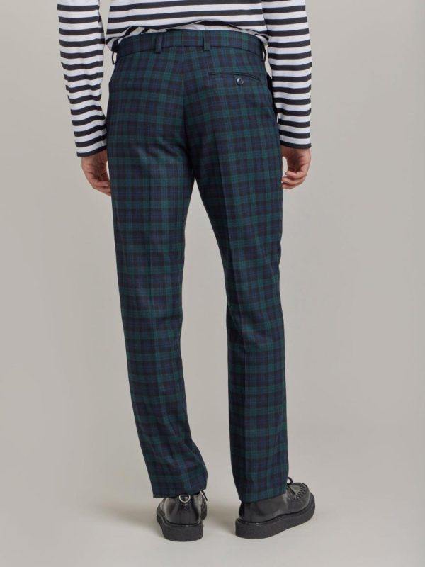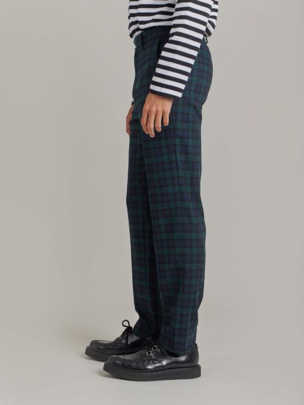 Jamming checked wool trousers.