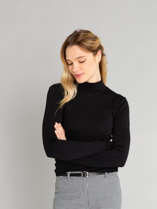 The Vian t-shirt is a classic piece that will prove a winter wardrobe essential. With its slight high collar, it can be worn on its own or under a jumper in cold weather.