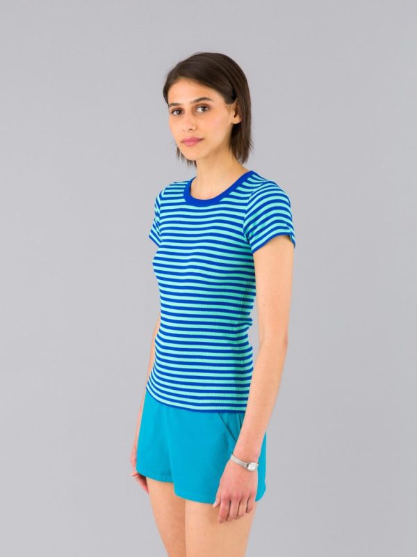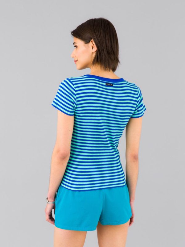 The ribbed cotton Boogie t-shirt showcases the iconic agnès b. 8/8 stripes.