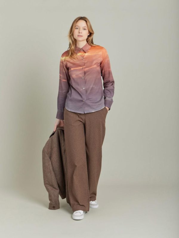 Cotton Jasmine shirt with digital “Coucher de soleil” (Sunset) photo by agnès b.
