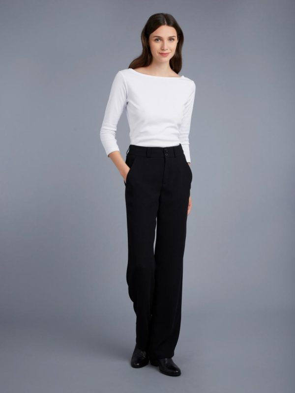 These Trellis trousers have a straight cut, a waistband with belt loops, and are fastened with two buttons.