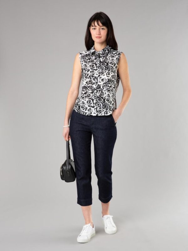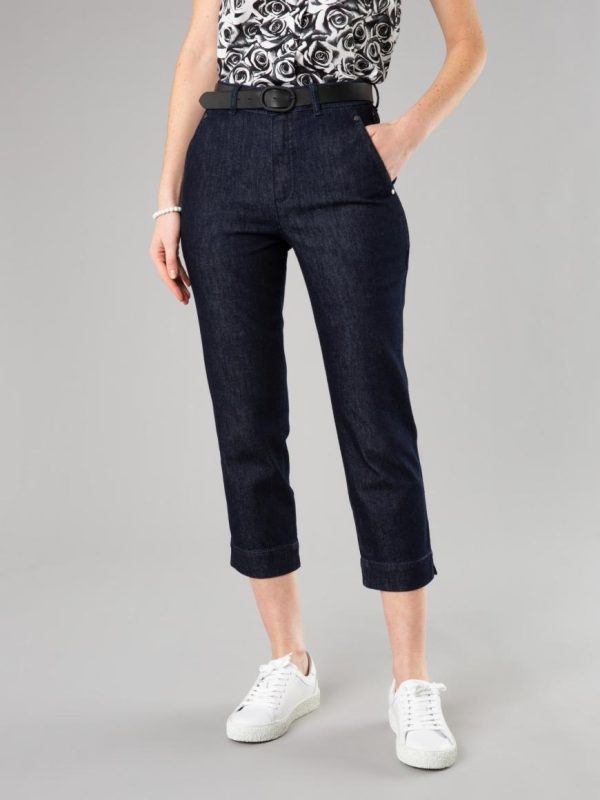 The high-waisted Marilyn jeans in denim show off your ankles thanks to their capri length.