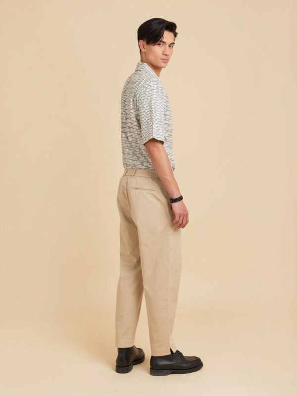 The Jami trouser is crafted from over dyed cotton. Cut for a slim fit, these trousers feature an elastic waistband, 2 slanted front pockets and a welt back pocket.